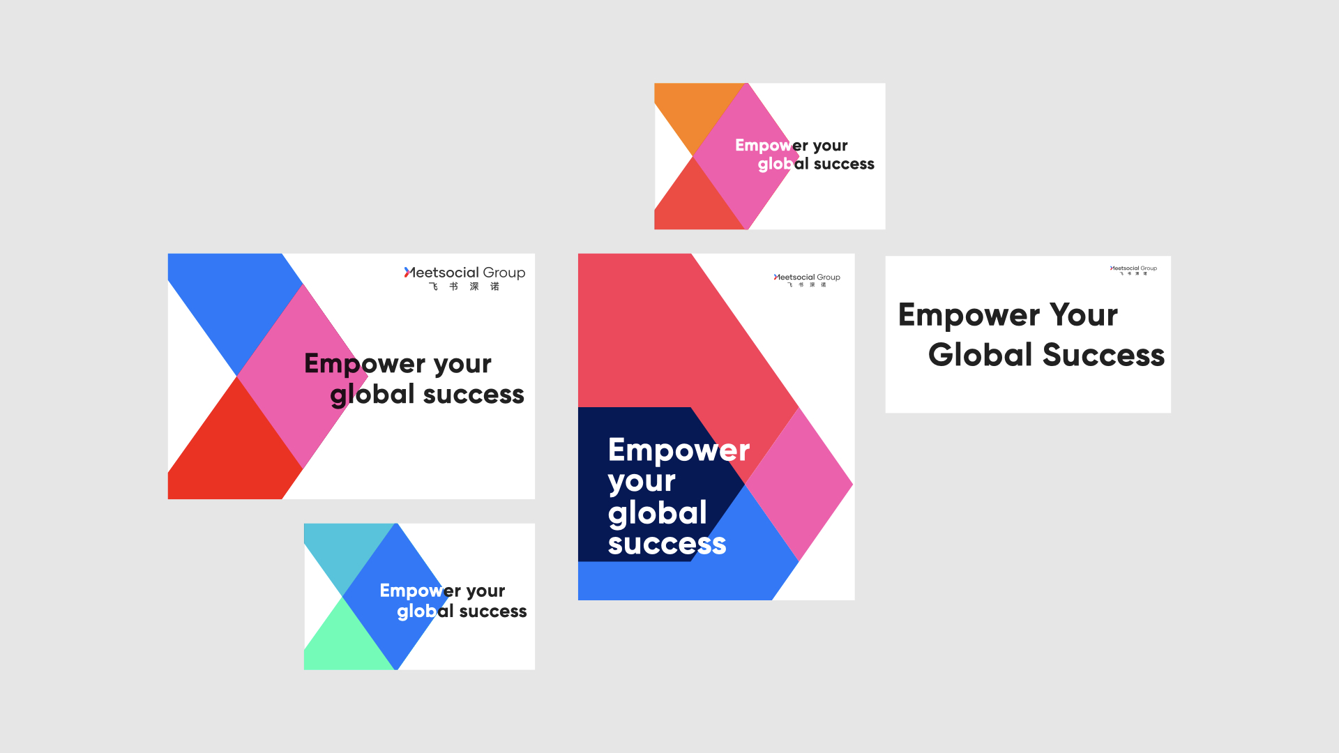 整套VI系统严格规范了LOGO的应用比例、色彩标准,同时延伸至企业官网、海外分支机构物料、营销案例手册、展会展台等全场景,确保飞书深诺在全球市场的视觉统一性,有效提升了品牌的国际辨识度,助力其拓展海外市场、吸引更多出海企业合作,进一步巩固了其在数字营销出海领域的领军地位。