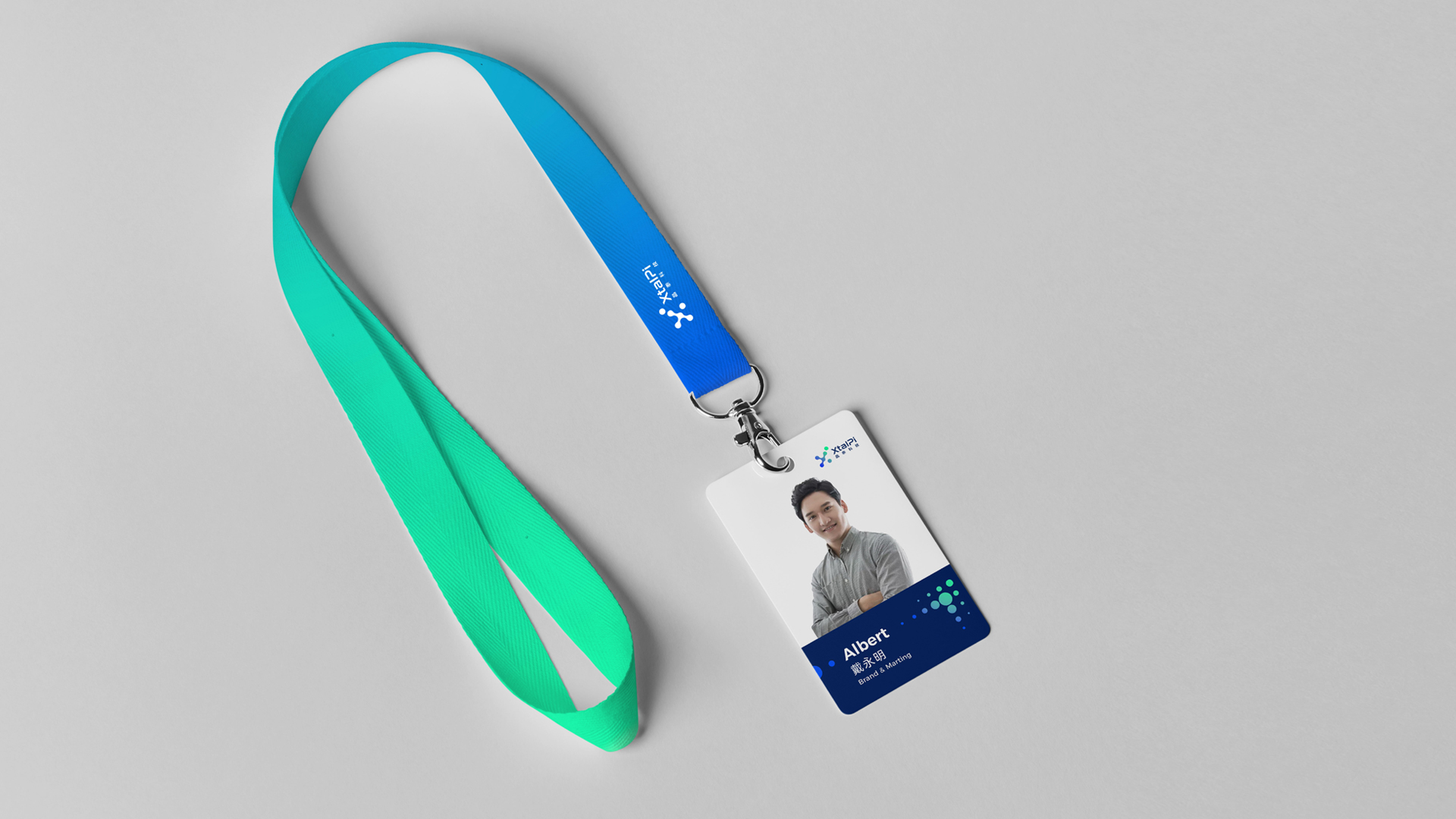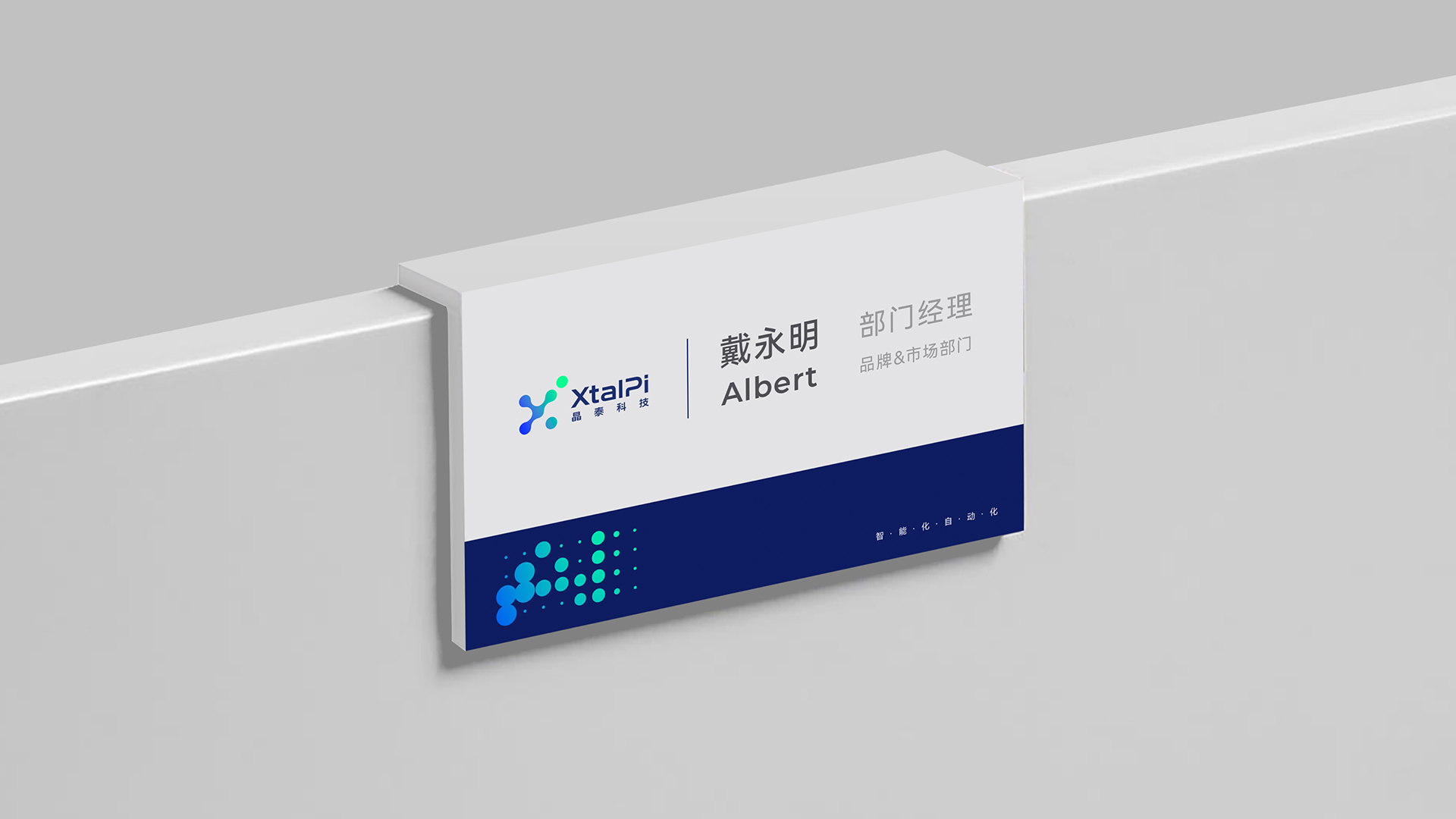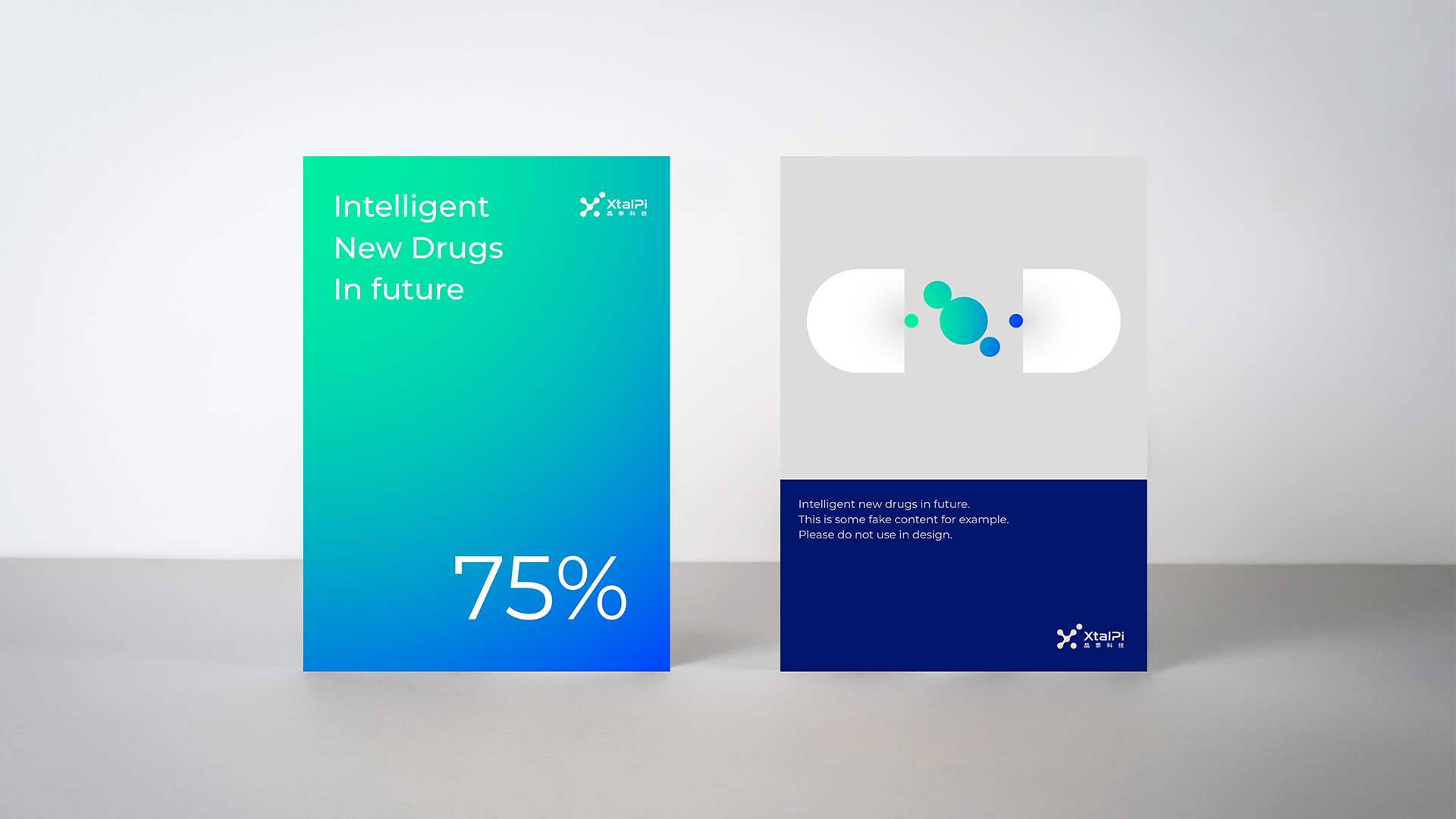 名片作为企业对外沟通的第一触点,是VI系统最基础也最关键的应用场景,其设计既要体现专业感,也要传递品牌基因。晶泰科技的名片设计,严格遵循基础系统规范,将品牌核心元素进行精简整合,实现了“小空间里的大统一”:正面以品牌主色科技蓝为底色,左上角放置简化版Logo(保留核心图形与字体,适配名片尺寸),字体选用规范中的无衬线字体,姓名、职位、联系方式的排版简洁有序,突出专业性;背面采用浅灰色中性色,印有品牌核心Slogan与简约的分子图形符号,既呼应了量子+生物医药的核心定位,又与正面设计形成呼应,避免视觉杂乱。
